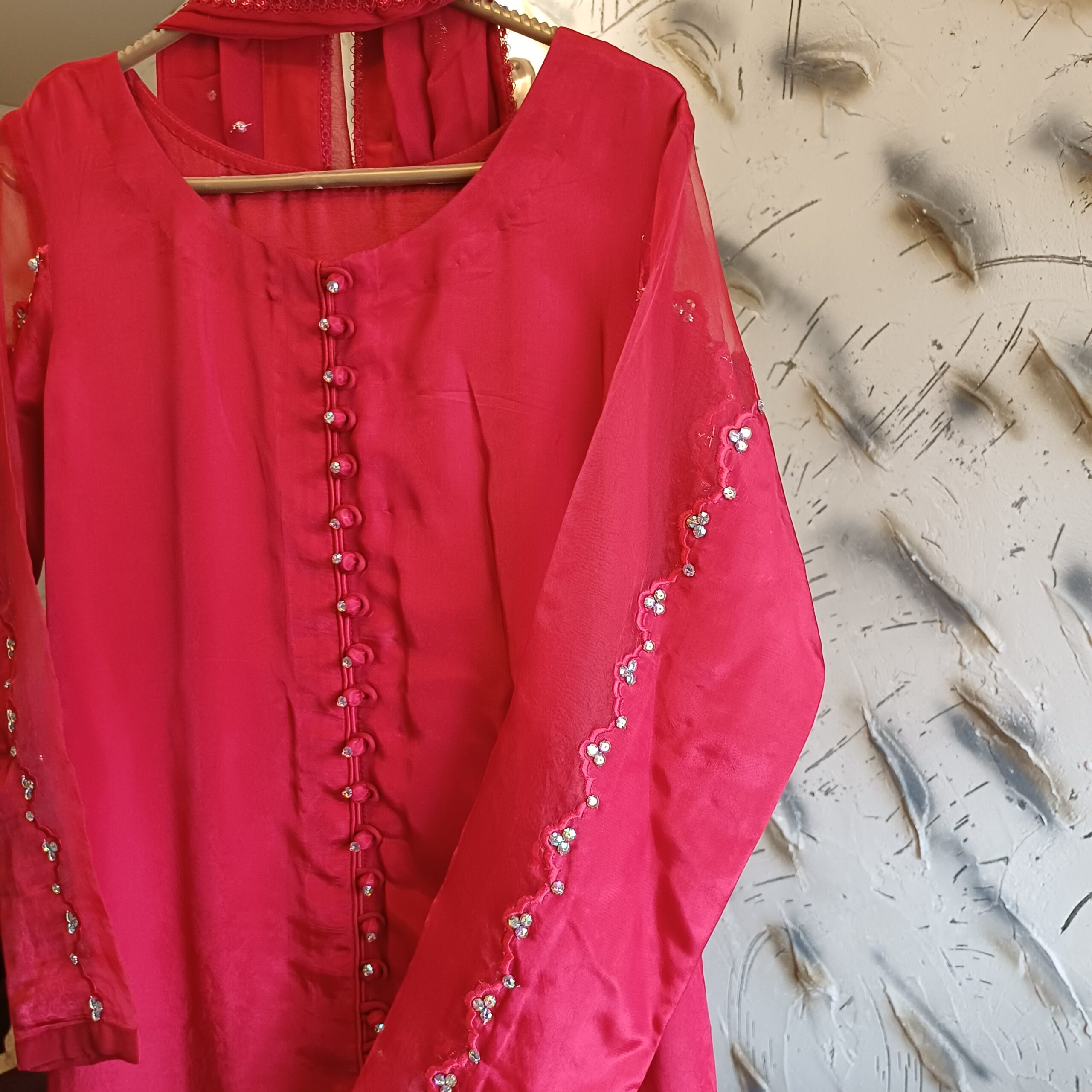 Perfect for evening events, formal dinners (dawats), or special gatherings, this outfit strikes the right balance between tradition and trend — effortlessly stylish yet timelessly graceful.
